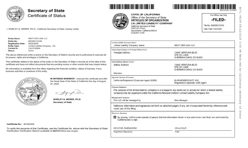 অনুসন্ধানে দেখা গেছে, নেক্সটসিইও ইউএসএ কোম্পানিটি চলতি বছরের ২২ মে নিবন্ধিত হয়েছে একটি তৃতীয় পক্ষেরে বিজনেস রকেট ইনকরপোরেশনের মাধ্যমে। এই ধরনের নিবন্ধিত প্রতিষ্ঠানের মাধ্যমে মালিকানা থাকে লুকানো। ফলে এই কোম্পানির মালিক যে মোঃ লিমন মিয়া তা সার্টিফিকেট দিয়ে নিশ্চিত করা যাবে না। তাছাড়া এজেন্টদের মাধ্যমে গঠিত কোম্পানিগুলোর অনেক ক্ষেত্রেই কোনো স্থায়ী ভিত্তি থাকে না। অথচ লিমন ক্যালিফোর্নিয়া স্টেটের এই নামে কোম্পানি আছে এমন একটি সনদ শেয়ার করে প্রলুবদ্ধ করছেন। ২০১৯ সাল থেকে ব্যবসায় করেন ধুয়ো তুলে এমন অনেক বিষয়ই এই ব্যাবসায় প্রক্রিয়াকে সন্দেহের দৃষ্টিতে দেখাই সঙ্গত। মিরপুরের অর্কিড কমিউনিটি সেন্টারে সাত তলায় আমার আরও একটা আউটলেট আছে। শিয়াল বাড়ীতে গোডাউন আছে। সব মিলিয়ে আমার বার্ষিক আয় ৬ মিলিয়ন ডলার।