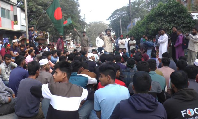 হাদিকে হত্যার প্রতিবাদে পুলিশ সুপার কার্যালয়ের সামনে বিক্ষোভ