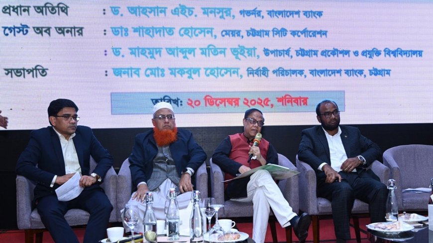 গভর্নর ড. আহসান এইচ মনসুর আরও বলেন, ‘চট্টগ্রাম অঞ্চলের ভূ-রাজনৈতিক ও অর্থনৈতিক বিকাশের জন্য সিঙ্গাপুর, দুবাই ও হংকং এর ন্যায় চট্টগ্রাম অঞ্চলের আঞ্চলিক ও বৈশ্বিক কানেক্টিভিটি বৃদ্ধি করতে হবে। চট্টগ্রাম অঞ্চল বাংলাদেশের অর্থনীতির প্রাণকেন্দ্র। এ অঞ্চল সমুদ্র, পাহাড় ও সমতলের এক অন্যন্য অঞ্চল। দেশের প্রধান সমুদ্রবন্দর, রপ্তানি প্রক্রিয়াজাতকরণ অঞ্চল, ভারী শিল্প, জ্বালানি অবকাঠামো এবং আন্তর্জাতিক বাণিজ্যের সিংহভাগ এ অঞ্চলের ওপর নির্ভরশীল। তবে এ সম্ভাবনাকে পূর্ণ রূপ দিতে আর্থিক খাতের সুদৃঢ় ভূমিকা অপরিহার্য। কেন্দ্রীয় ব্যাংক হিসেবে আমাদের দায়িত্ব হলো উৎপাদনমুখী খাতে পর্যাপ্ত ও স্বল্পমূল্যের ঋণপ্রবাহ নিশ্চিত করা।’