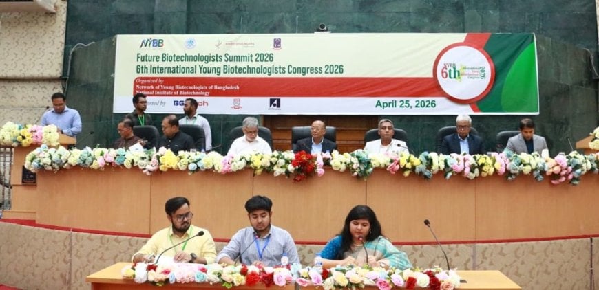 জিনোমিক্স ও এআই-নির্ভর বায়োইনোভেশনের মাধ্যমে দেশকে একটি উদীয়মান বৈশ্বিক বায়োটেক হাব হিসেবে প্রতিষ্ঠার শপথ নিলেন শিক্ষাবিদ, গবেষক ও উদ্ভাবকেরা। আন্তর্জাতিক ডিএনএ দিবস উপলক্ষে অনুষ্ঠিত ‘ফিউচার বায়োটেক সামিট’ এবং ‘৬ষ্ঠ আন্তর্জাতিক ইয়াং বায়োটেকনোলজিস্টস কংগ্রেস ২০২৬’- এ এই প্রত্যয় ব্যক্ত করেন অংশগ্রহণকারীরা। “Omics and AI 2026” প্রতিপাদ্যে এবারের সম্মেলনে আধুনিক বায়োটেকনোলজি ও এআই-এর সমন্বিত প্রয়োগ, গবেষণার ভবিষ্যৎ দিকনির্দেশনা এবং বৈশ্বিক উদ্ভাবন ব্যবস্থায় বাংলাদেশের অবস্থানকে শক্তিশালী করার বিষয়গুলো গুরুত্ব পেয়েছে।