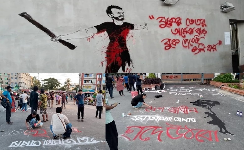 দেয়াল লিখন ও গ্রাফিতিতে শিক্ষার্থীদের বিরুদ্ধে মামলা প্রত্যাহার, গুম–আটককৃতদের মুক্তি, হল–ক্যাম্পাস খুলে দেওয়া এবং দেশব্যাপী ছাত্রহত্যার প্রতিবাদ ভেসে উঠেছে।
