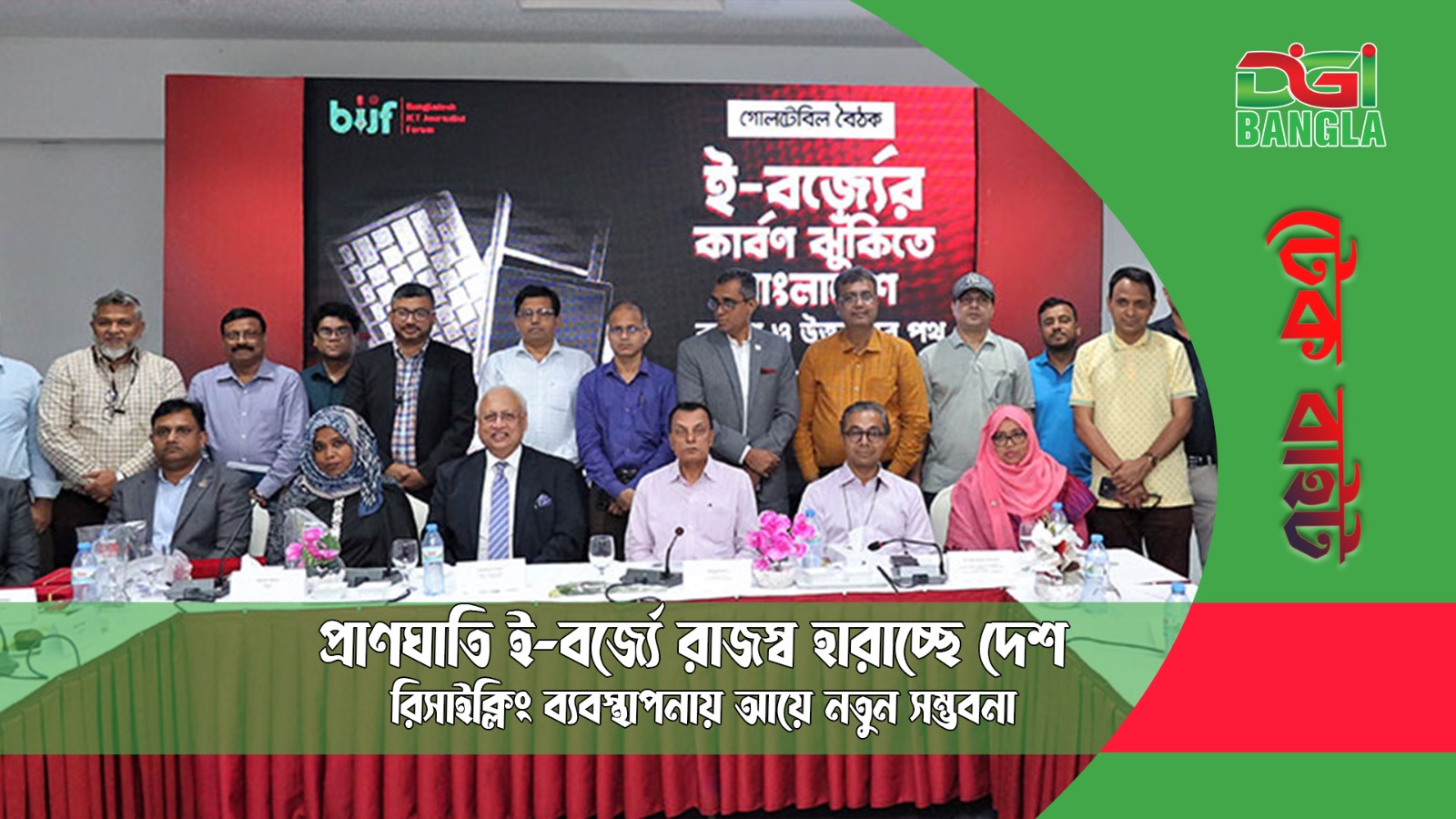 রাজধানীর প্যানপ্যাসিফিক হোটেলে ই-বর্জ্য থেকে বাংলাদেশ-কে উত্তরণের পথ খুঁজতেই শনিবার এই গোলটেবিল আলোচনার আয়োজন করে তথ্যপ্রযুক্তি সাংবাদিকদের সংগঠন বিআেইজেএফ।